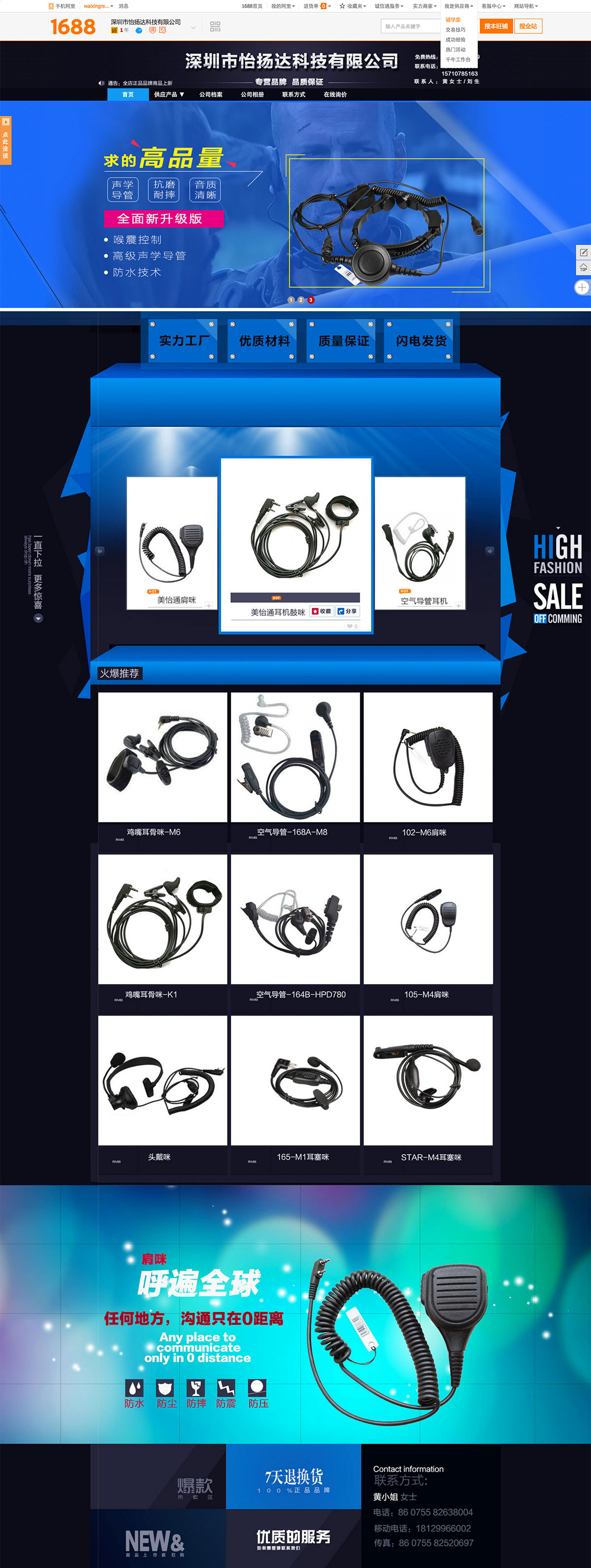 介绍:深圳市怡扬达科技有限公司是一家专业从事通讯、集群产品、对讲机配件研发、生产、销售、服务于一体的现代化企业。 本公司属立兴行科技港资下属企业,在大陆设有工厂,专业自主生产中高档对讲机耳机,己10年有余.产品远销欧美等国,质量保证。全部选用环保材料,在同行业中享有良好口碑。在产品设计、开模、塑胶射出、组装.品管测试、包装等都有严格要求.产品用于航空运输系统,海洋船只运输系统,交通通讯系统,司法系统、消防、保安、机场、金融、建筑施工,以及物业管理公司,酒店餐饮娱乐服务行业等各类商业用途和个人用途,我公司可应客户要求在产品上印上LOGO.及品牌,以满足各行业的客服务需求。以人为本,诚信经营,用心服务,尽善尽美。是我司宗旨.欢迎各界朋友来电洽谈,订购.