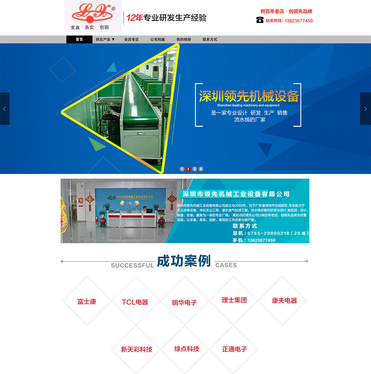 网址:szlingxian.1688.com介绍:深圳市领先机械工业设备有限公司成立与2003年,位于广东省深圳市光明新区.专业致力于无尘涂装设备,净化无尘工程,废水废气处理工程,流水线设备的研发与设计.集规划、设计、制造、安装、服务为一体的专业厂商。